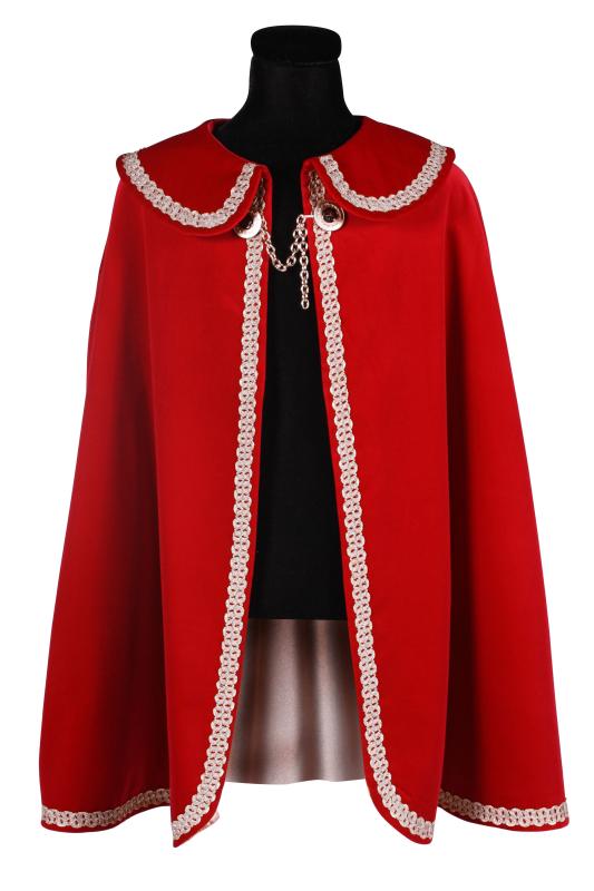 Umhang in 4 Farbkombinationen (blau oder rot mit Gold- oder Silberborte) und 2 Längen (ca.80 und ca.98 cm) erhältlich.