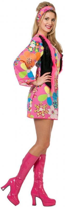 Kostüm besteht aus einem Hippiekleid mit angenähte Weste und Kopftuch