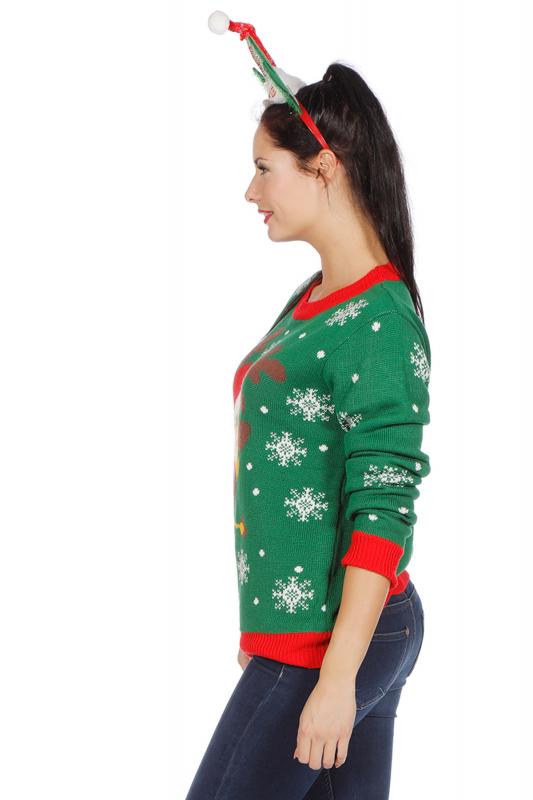 "Damen-Herren Weihnachtspulli mit Rentier,grün"