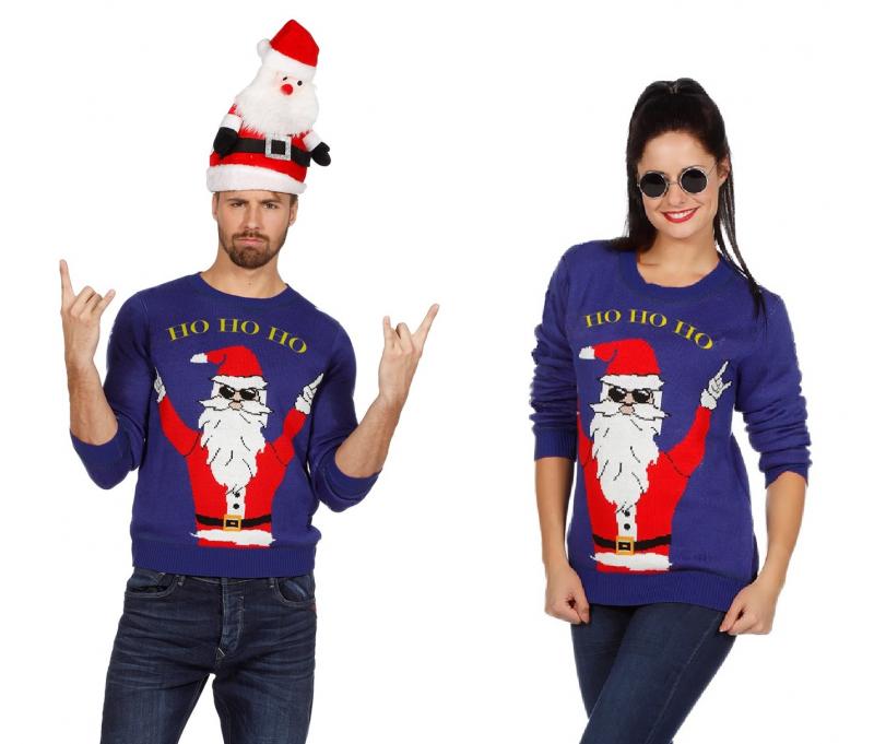 "Damen-Herren Weihnachtspulli Rocking Santa,blau"